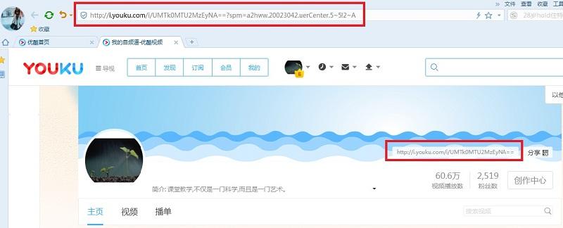 2..需要把您的優酷主頁的地址復制給我(鼠標點擊您的優酷頭像,打開的這一頁的地址欄中的地址)